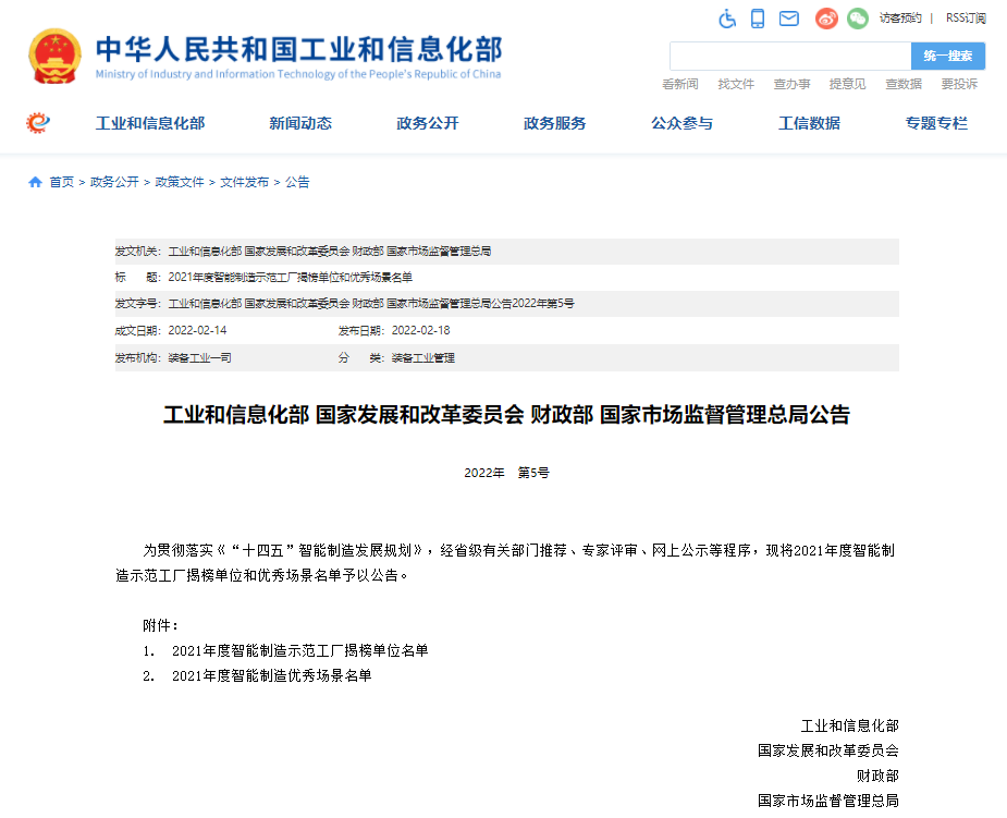 February和能網絡協同制造榮登工信部2021年度智能制造優秀場景榜單