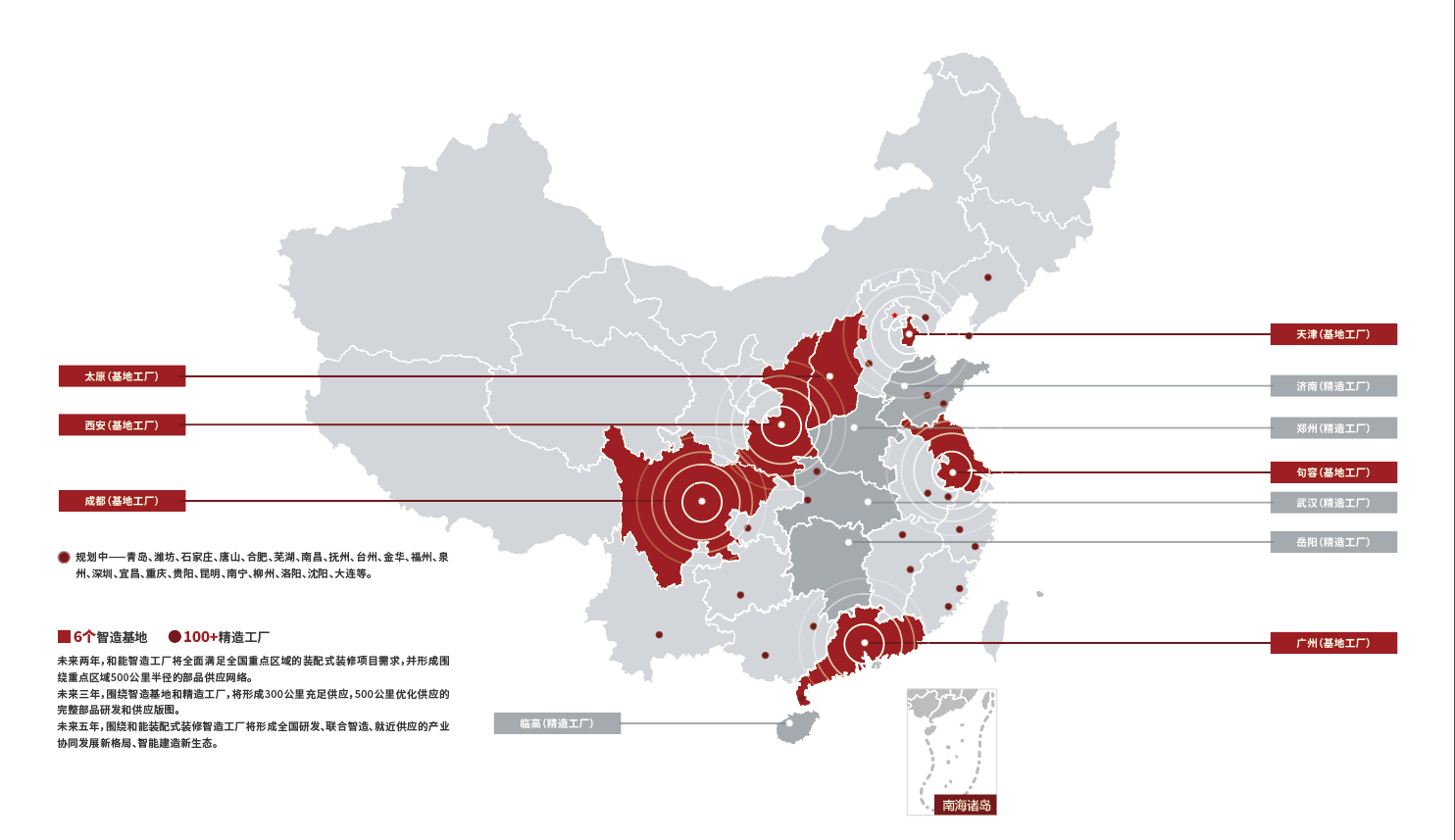 同時,以全國六大部品智能制造工廠組成的工業4.0產業集群為跳板,通過實體制造工廠和數字工廠的雙輪驅動,和能智能制造車間可以滿足全國項目高標準內裝建造需要的定制化主材部品供應。